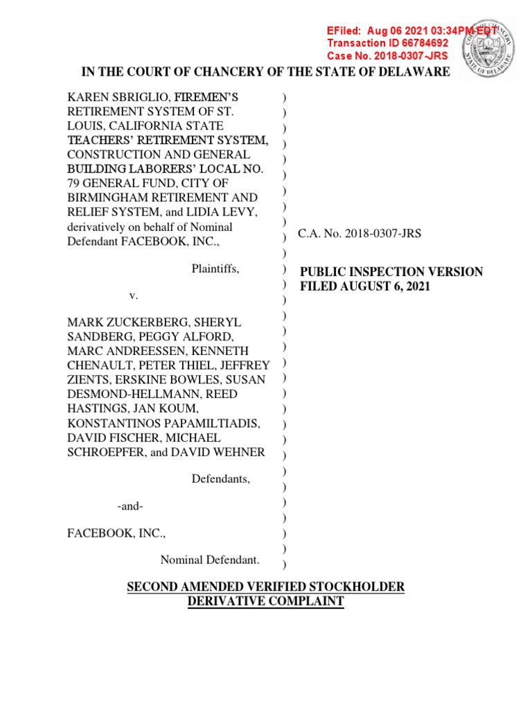Facebook Complaint By Pensioners And Construction Union Pdf Facebook American Government