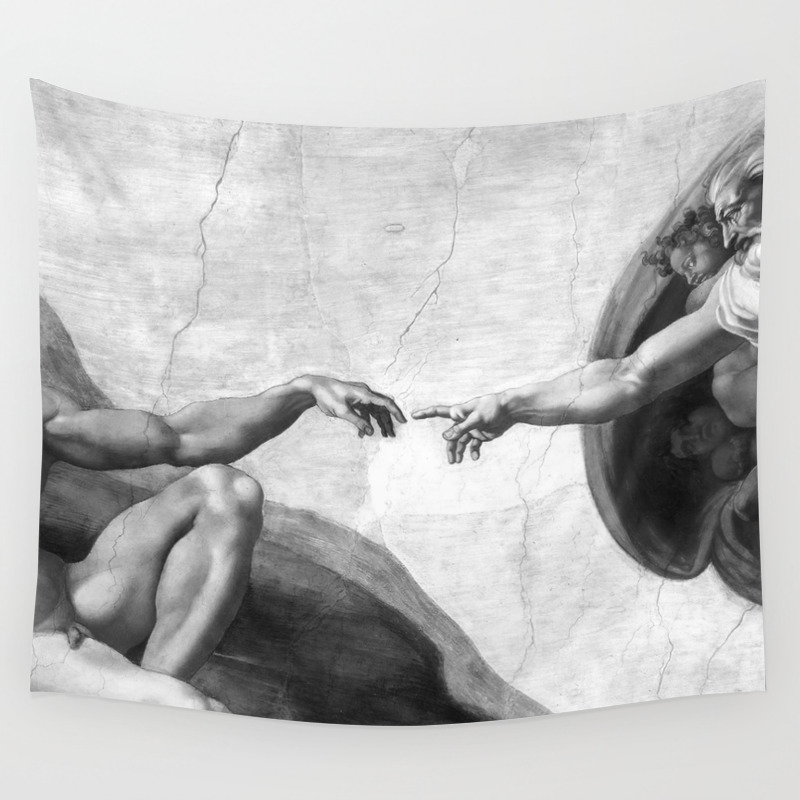 Black And White Creation Of Adam Painting By Michelangelo Sistine Chapel Wall Tapestry By Podartist Society6